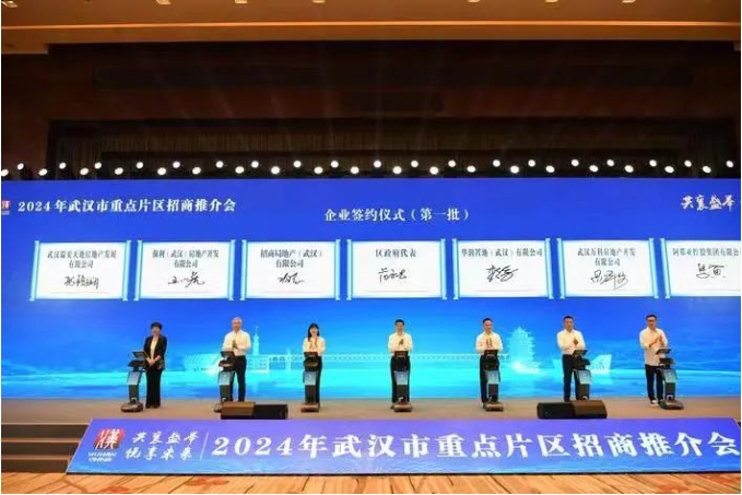 7月6日,武汉市举行重点片区招商推介会,邀请了43家知名房地产龙头企业、19家重要金融机构以及相关商会和校友会参加。推介会上,武汉市集中推介了52个优质土地项目,还开展了投资建设意向签约仪式,18家企业与8个区现场签约18个项目。