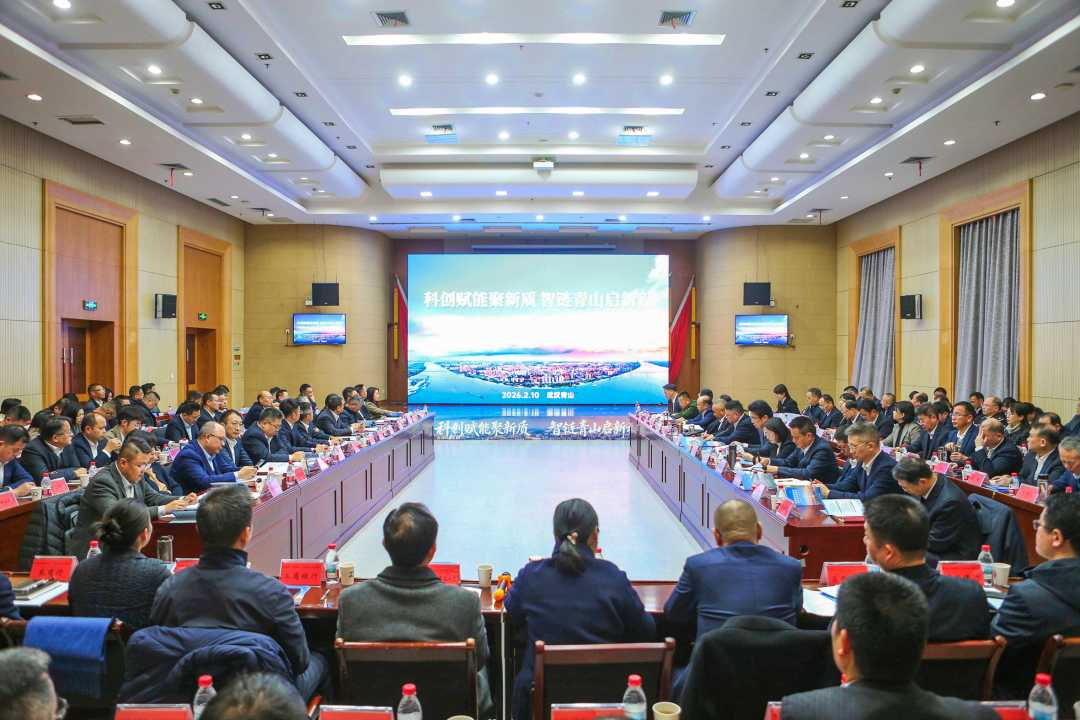 春潮涌动展新篇,实干担当开新局。2月10日,“科创赋能聚新质 智链青山启新程”2026年青山区(化工区)招商引资大会成功召开。12家“招商大使”企业负责人,20家“335”产业链重点企业代表,25家投资平台、商务楼宇、产业园区和金融机构代表参会,政企同心共谋新型工业化强区建设,协力奋进青山“十五五”开局起步。区委书记、化工区党工委书记余志成出席会议并讲话,区委副书记、区人民政府区长、党组书记,化工区党工委副书记、管委会主任沈涛主持会议。